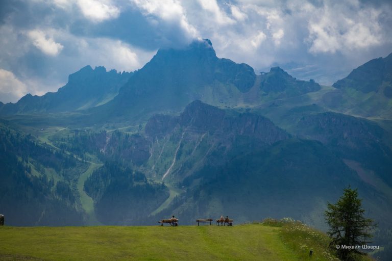 От верхней станции до главной смотровой — минут 15 по удобной тропе. Можно сидеть часами и наблюдать, как меняется свет на скалах. А в ресторане Baita Troier Hütte подают отличный гуляш с видом на всю долину.